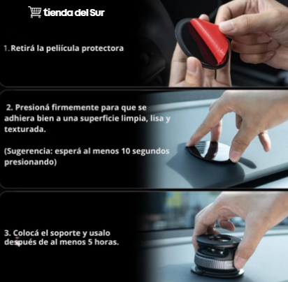 Fijación doble: ventosa + adhesivo 3M para máxima seguridad.
